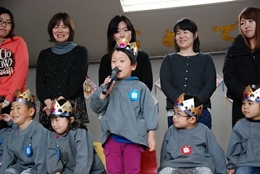の終わりにはらいおん組、うさぎ組が一緒に♪ひなまつり♪の歌を歌い、誕生児のお母さん方に聞いていただきました。
