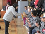 カード等のプレゼントと、らいおん組からのプレゼントをそれぞれ受け取りました。みんな嬉しそうな笑顔を見せてくれました。