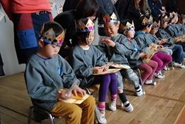 今回はクラスの発表はおやすみでした。その代わりに職員が「白雪姫」の劇を披露しました。子供たちからは結構大きな反響がありました!(どの役もはまり役?だったからかな?)