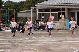 第50回の運動会を行いました。たくさんのお客様の見守る中、子どもたちの元気な入場行進で始まりました。元気に体操をしたあといよいよ競技のスタートです。