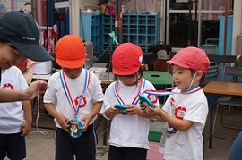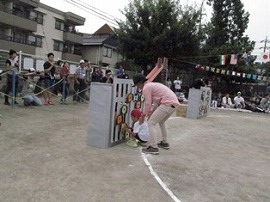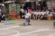 らいおん組の競技「PART1 スリーゾーンをクリアせよ!」と「PART2 チャレンジ・タイム!」です。パート1では4~5人ひと組で3つのゾーンをクリアしていきます。チーム全体の動きを考えながら進んでいかないとうまくいかない競技でした。チームワークがよかったのはどこのチームだったかな?