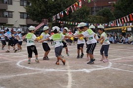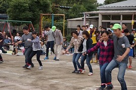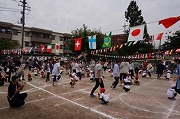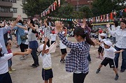 運動会の最後は親子フォークダンス。会場全体が笑顔でいっぱいでした。