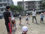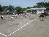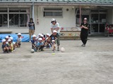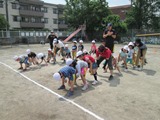 ボールを頭の上や足の間から回す競争をしたり・・・
