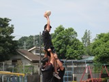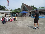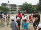 日野自動車ラグビー部の方々と、体を思いっきり動かして遊びました。炎天下でしたが、吹く風に助けられ、1時間ほど動き続けた子どもたち。結構体力があるのだなと感心しました。
